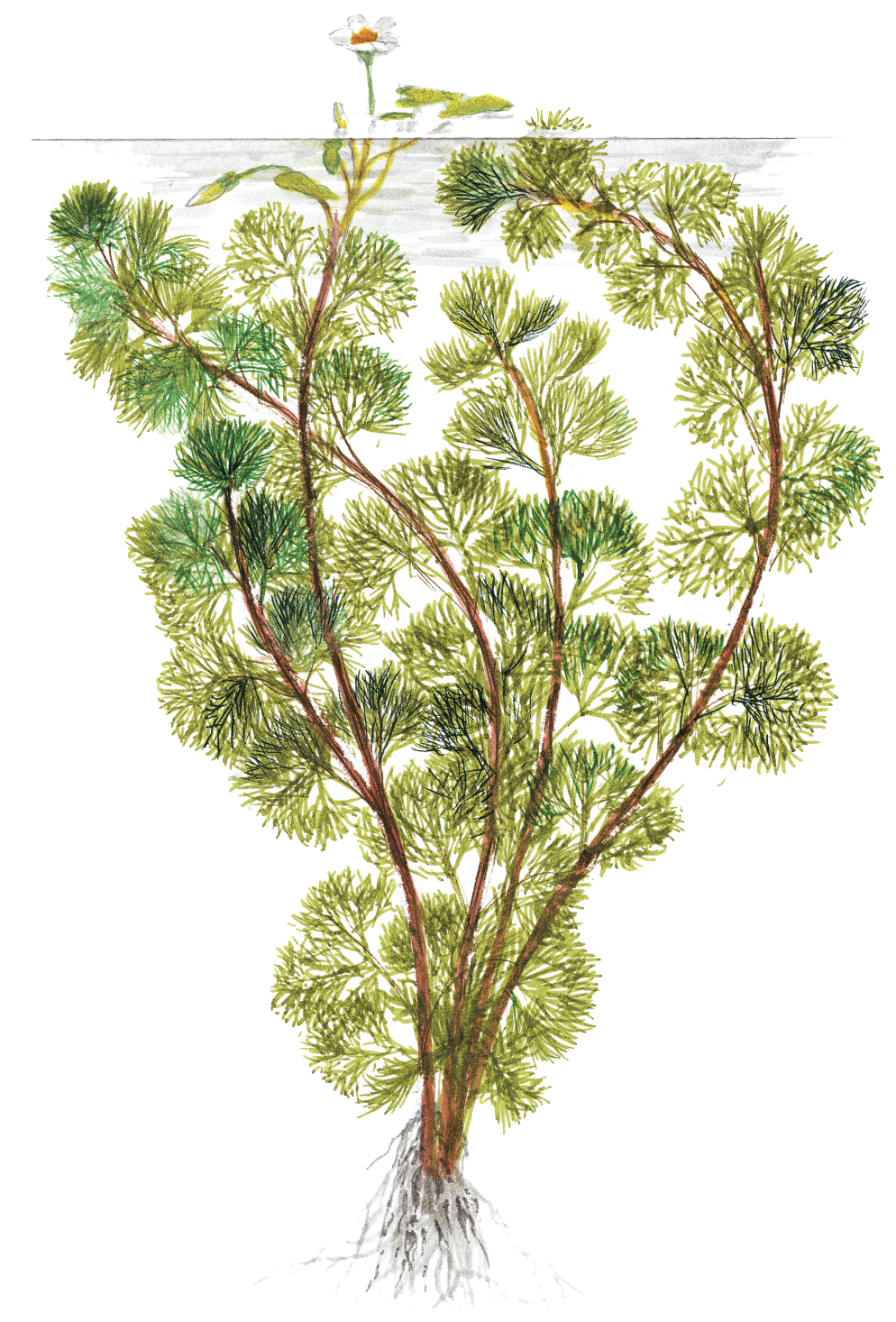 Eine sehr beliebte Aquarienpflanze aus Südamerika, die schöne, feine Blätter bildet und 30-80 hoch wird. Von den Cabomba-Arten fordert sie am wenigsten Licht, bereitet jedoch in schwach beleuchteten Aquarien Probleme. Wenn nicht genügend Licht vorhanden ist, empfiehlt sich ein Versuch mit der weniger lichthungrigen Limnophila sessiliflora. Sieht in Gruppen am dekorativsten aus. Wird örtlich als Gemüse verzehrt.