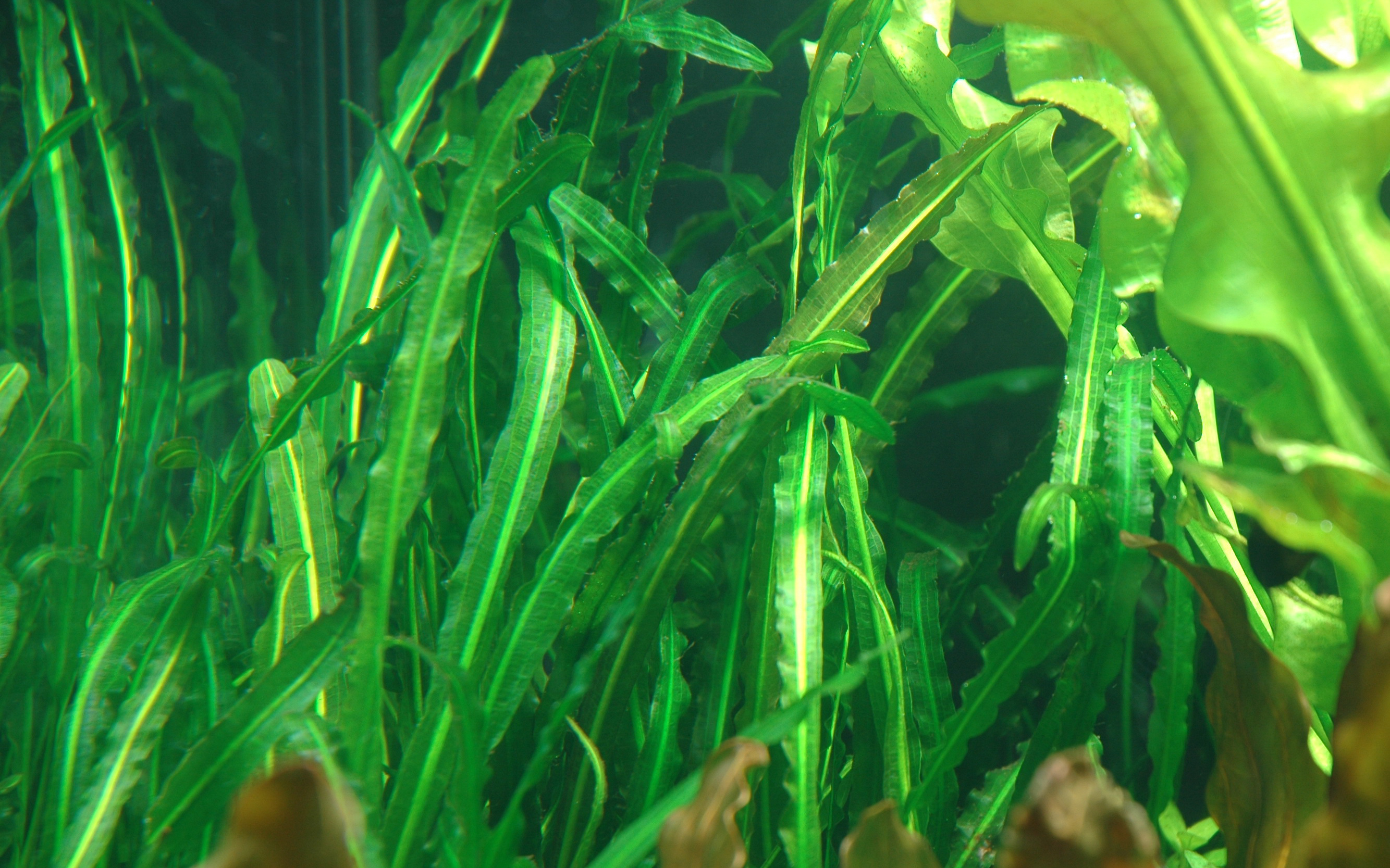 Aponogeton longiplumulosus aus Madagaskar ist mit den gewellten Blättern eine prächtige Pflanze, die für große Aquarien empfohlen werden kann. Sie wird bis zu 60 cm hoch und 40 cm breit. Sie ist recht anspruchslos und stellt keine besonderen Anforderungen an die Wasserqualität. Sie blüht relativ häufig im Aquarium und ist somit eine Zier für große offene Aquarien. Das Wachstum stagniert manchmal, setzt sich aber normalerweise nach einigen Wochen Ruheperiode wieder gut fort.