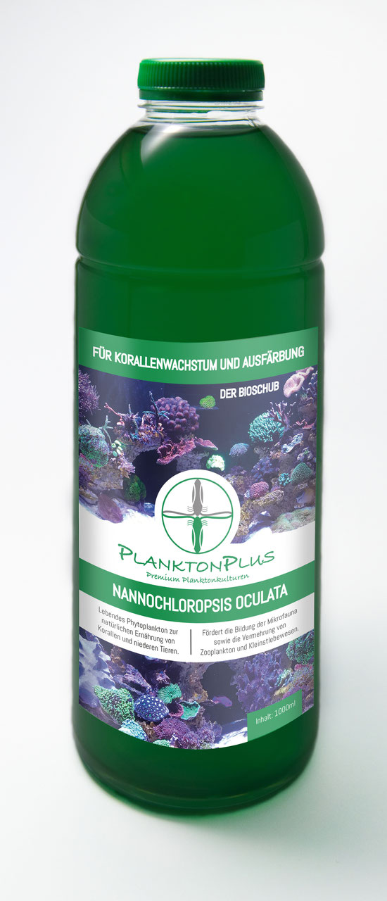 Lebendes, sehr gehaltvolles Phytoplankton zur natürlichen Ernährung von Korallen und niederen Tieren. Fördert die Bildung der Mikrofauna sowie die Vermehrung von Zooplankton und Kleinstlebewesen.